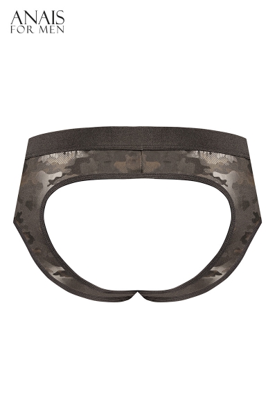 A l'avant, ce dessous sexy ressemble à un shorty très ajusté dont la coque mettra les attributs masculins en valeur. A l'arrière, il laisse tout paraître grâce à sa coupe en forme de jockstrap.