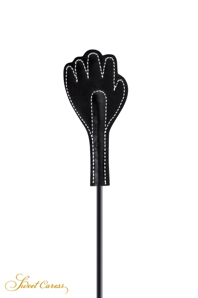 Une claquette en forme de main noire est fixée à l'une de ses extrémités. Les coups portés infligeront de légères morsures et les punitions seront plus morales que physiques.